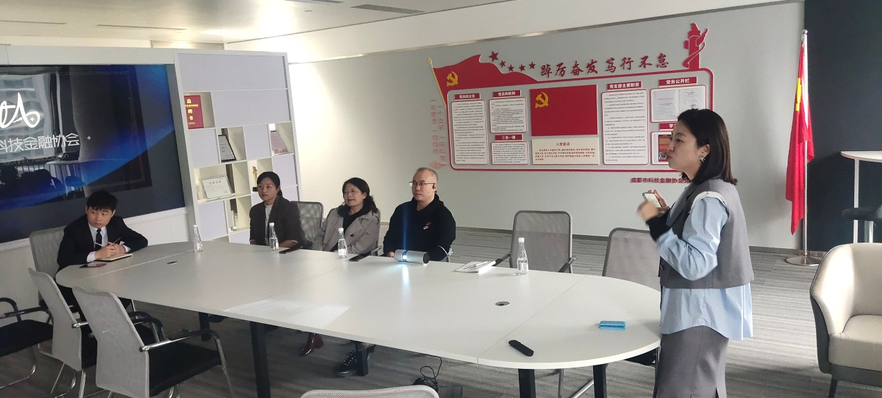 其次,马硕涵同学给各位老师介绍成都市科技金融协会服务,紧紧围绕“数字科技应用、数字经济示范、数字经济招商、产业载体构建、产业数字化国际化促进”等六大核心目标,搭建行业服务云平台、制度未来新数字产业标准等等。希望能够与母校进行校企合作、加强产学融合、推动专业建设,秉承初心与使命,共同建设“数字+金融”行业的践行者。