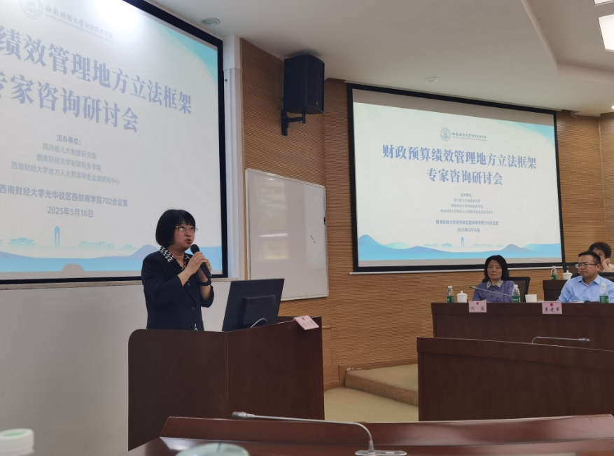 2025年5月16日,省人大制度研究会与西南财经大学财政税务学院、西南财经大学地方人大预算审查监督研究中心在西南财经大学(光华校区)共同举办“财政预算绩效管理地方立法框架”专家咨询研讨会,我校预算绩效管理研究中心高淑芳教授受邀参会并作主题分享,同中央财经大学校长马海涛、财政部财政科学研究院研究员王泽彩、南开大学经济学院教授马蔡琛等十余名专家学者就“财政预算绩效管理地方立法”主题展开深入交流。