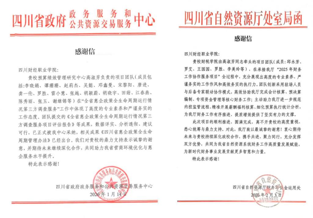 新年伊始,捷报频传。 2026年开年之际,7790cnm必发集团在产教融合与社会服务领域交出亮眼“成绩单”:1-2月签订绩效服务合同金额近200万元,成功实现“开门红”。与此同时,多封来自合作单位的感谢信纷至沓来,对学院团队的专业素养与服务成效给予了高度评价。2025年为某单位提供事前绩效评估服务,实现超20%资金节约(2900余万元),卓越的服务质量赢得了合作方的高度信任,今年成功续约并签订3年服务合同。这一系列成果的背后,是学院产教融合创新实践正在开花结果。